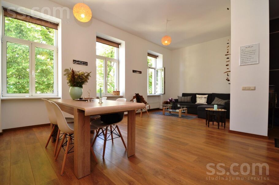 Renovētā ēkā Rīgas centrā pārdod 6 izolētu istabu dzīvokli. Logi vērsti gan uz ielu, gan iekšpagalmu. Sastāv no viesistabas un 5 izolētām istabām, virtuves ar atsevišķu ēdamzonu, vai darba zonu, apvienota sanitārā mezgla. Iespējams izbūvēt papildus sanmezglus. Griestu augstums 3.2 metri.Renovācijas laikā veiktie darbi:Atjaunota ēkas fasāde;kāpņutelpa;Lapiekārtoti iekšpagalmi;Mainīta elektroinstalācija;Uzstādīti domofoni ar kameras funciju pie ārējām ēkas durvīm;Kanalizācija;Udensvadi;Siltā ūdens cirkulācija;Apkures mezgls ar visām apkures trubām;Katrā ēkas dzīvoklī uzstādīti alokatora tipa siltuma skaitītāji.A 6-room apartment for sale in a renovated building in the center of Riga. The windows face both the street and the courtyard. Consists of 6 isolated rooms, a kitchen with a separate dining area or work area, a combined sanitary unit. It is possible to build additional sanitary units. Ceiling height 3.2 meters.Works carried out during the renovation:Renovated facade of the building;Staircase;Landscaped courtyards;Changed electrical wiring;Intercoms with a camera function installed at the external doors of the building;Sewerage;Water pipes;Hot water circulation;Heating unit with all heating pipes;Allocator-type heat meters installed in each apartment of the building.Продается 6-комнатная квартира в отремонтированном здании в центре Риги. Окна выходят как на улицу, так и во двор. Квартира состоит из 6 отдельных комнат, кухни с отдельной обеденной зоной или рабочей зоной, совмещенного санузла. Возможна установка дополнительных санузлов. Высота потолков 3, 2 метра.Работы, выполненные во время ремонта:Реконструкция фасада здания;Лестница;Благоустройство дворов;Замена электропроводки;Домофоны с функцией видеонаблюдения, установленные на входных дверях здания;Канализационная система;Водопровод;Циркуляция горячей воды;Отопительный блок со всеми отопительными трубами;Теплосчетчики распределительного типа, установленные в каждой квартире здания.Pilsēta:RīgaRajons:centrsIela:Stabu 16[Karte]Istabas:6Platība:153 m²Stāvs:3/6/liftsSērija:Renov.Mājas tips:MūraCena:239 500 € (1 565.36 €/m²)